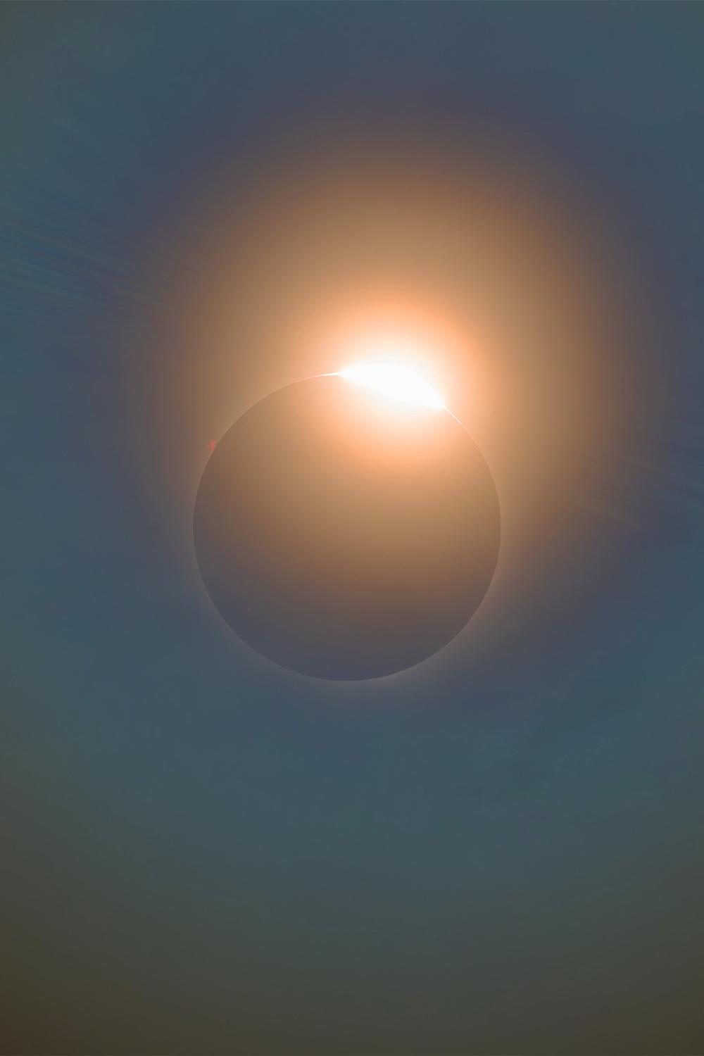 Diamond Ring effect from the sun reappearing from its duration behind the moon during the Total Eclipse in April, 2024